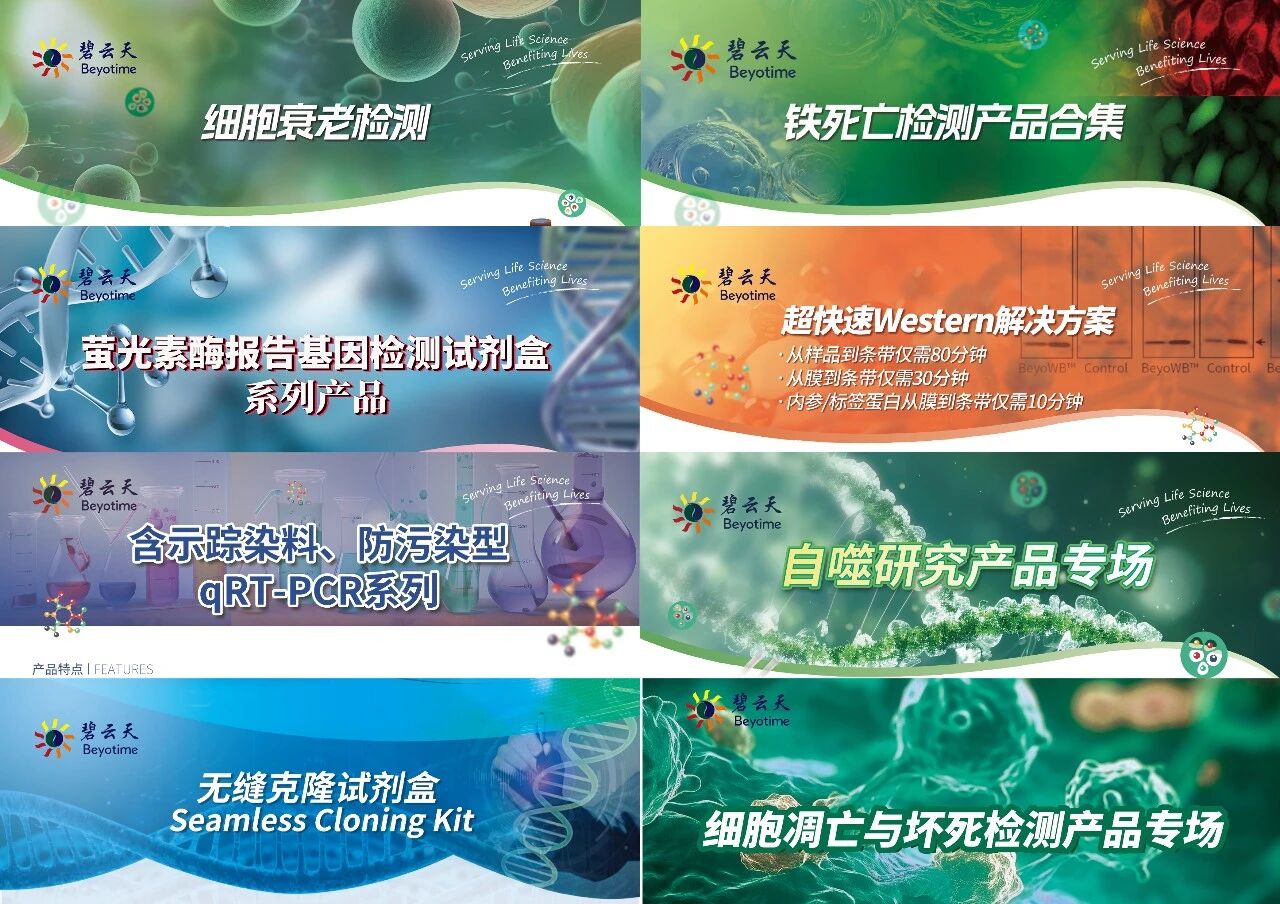 四月的温州,春和景明,衰老科学盛会也如约而至,2026中国衰老科学大会即将于4月24-26日在温州盛大召开。本次大会以“系统融合,交叉赋能”为主题,围绕衰老机制、精准干预、科学度量等前沿议题展开深度交流。作为深耕生命科学研究工具20余年的国产品牌,上海碧云天生物技术股份有限公司将携细胞衰老检测、端粒酶活性分析等特色产品亮相B05展位,为衰老研究提供灵敏、可靠的工具支持。