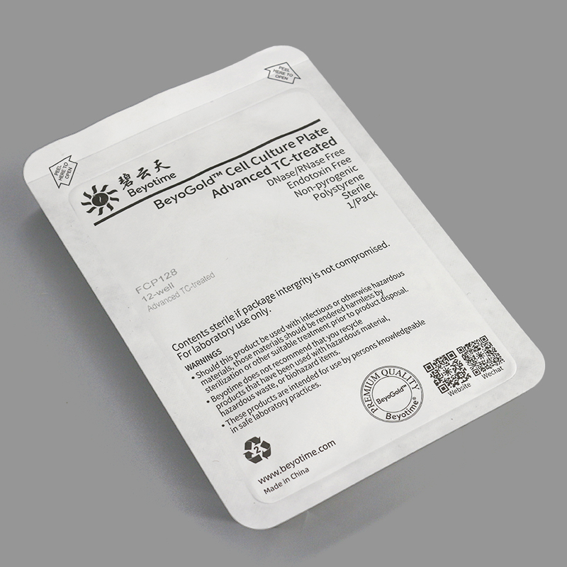 2. 本系列BeyoGold™ TC增强型细胞培养皿/板具有超高品质,使用超精密模具及全自动化生产工艺生产。其中,培养板系列产品均为独立吸塑盒包装,培养皿系列产品最小包装为10个/袋(包)。培养皿包装袋易撕口设计,便于使用。