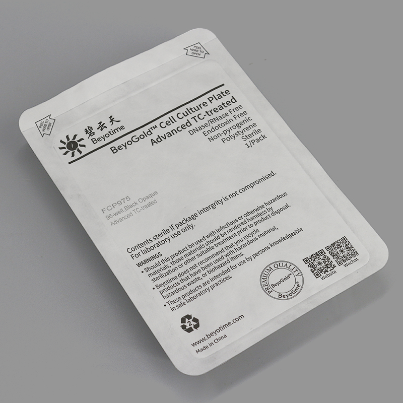 2. 本系列BeyoGold™ TC增强型细胞培养皿/板具有超高品质,使用超精密模具及全自动化生产工艺生产。其中,培养板系列产品均为独立吸塑盒包装,培养皿系列产品最小包装为10个/袋(包)。培养皿包装袋易撕口设计,便于使用。