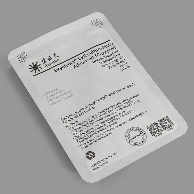 2. 本系列BeyoGold™ TC增强型细胞培养皿/板具有超高品质,使用超精密模具及全自动化生产工艺生产。其中,培养板系列产品均为独立吸塑盒包装,培养皿系列产品最小包装为10个/袋(包)。培养皿包装袋易撕口设计,便于使用。