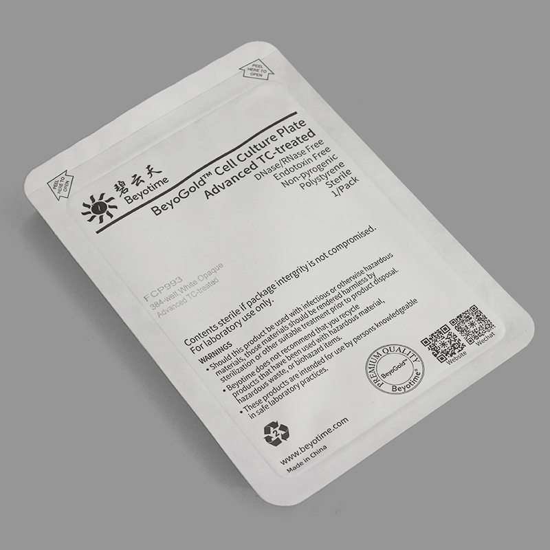 2. 本系列BeyoGold™ TC增强型细胞培养皿/板具有超高品质,使用超精密模具及全自动化生产工艺生产。其中,培养板系列产品均为独立吸塑盒包装,培养皿系列产品最小包装为10个/袋(包)。培养皿包装袋易撕口设计,便于使用。